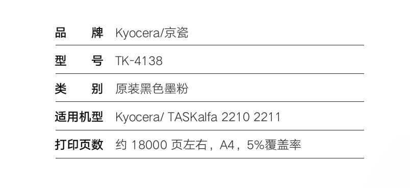 參數(shù) [品牌] 京瓷 [型號] 京瓷 2210/2211復(fù)印機(jī)碳粉墨粉 TK-4138粉盒