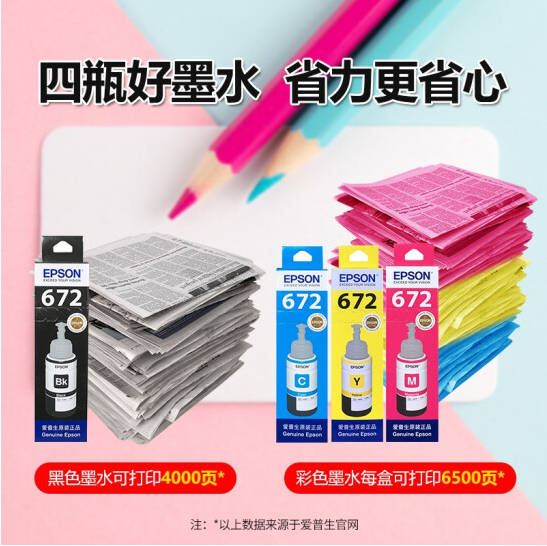 愛普生原裝672墨水 L360L351L313L310L363L485L383L380連供打印機(jī)墨盒 4色套裝