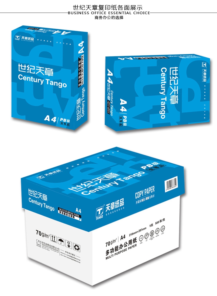 基本信息商品名:天章(TANGO) 世紀(jì)天章 70克A4復(fù)印紙 500張/包 5包/箱商品描述全純木漿,挺度好,不卡紙,中性靜電復(fù)印紙,保存期長(zhǎng) ※/通過SGS檢查的信息紙品 ※未檢測(cè)到鉛、汞、鎘六價(jià)鉻等重金屬有害物質(zhì),健康環(huán)保,信任選擇