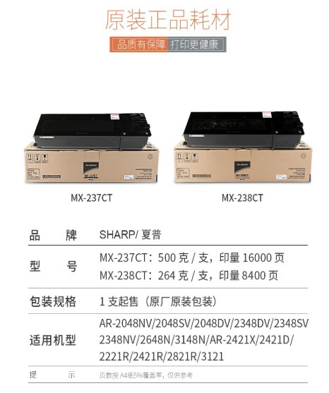 夏普MX-237/238CT墨粉AR-2048/2348SV/D/NV粉盒/2648/3148N碳粉 MX-237CT高容量單支(約打印16000頁)適用機(jī)型2048/2348S/D/NV/2648/3148